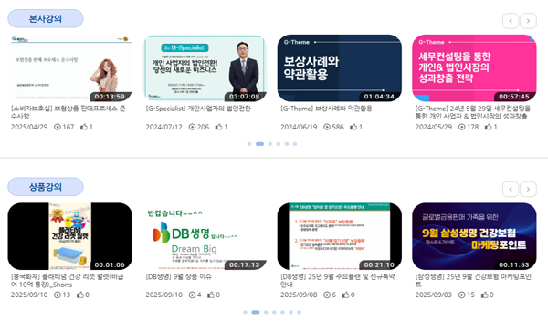 주3회 원수사 상품강의는 이달의 이슈 및 FC의 상품판매포인트 정립에 도움을 주며, 전문인/세일즈 특강을 정기적으로 제공.